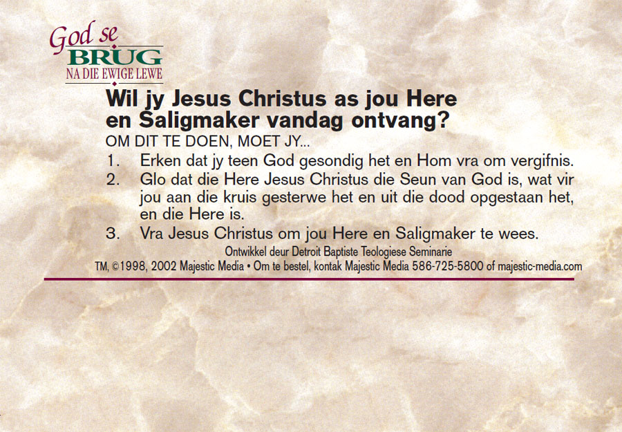 Ministries interested in using the "God's Bridge to Eternal Life" tract on their websites should contact Majestic Media at