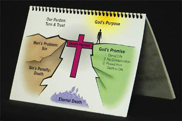 The "God's Bridge to Eternal Life" Flip Chart is a full-color, illustrated, 18-page, 8 x 5" chart designed to be used by a soulwinner in a home or by an instructor in a classroom.