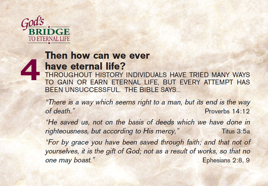 Ministries interested in using the "God's Bridge to Eternal Life" tract on their websites should contact Majestic Media at info@majestic-media.com or 586-725-5800 to obtain permission.